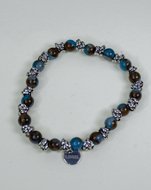 BRACCIALE OCCHIO DI TIGRE E TUBETTI IN ACCIAIO MARTELLATI