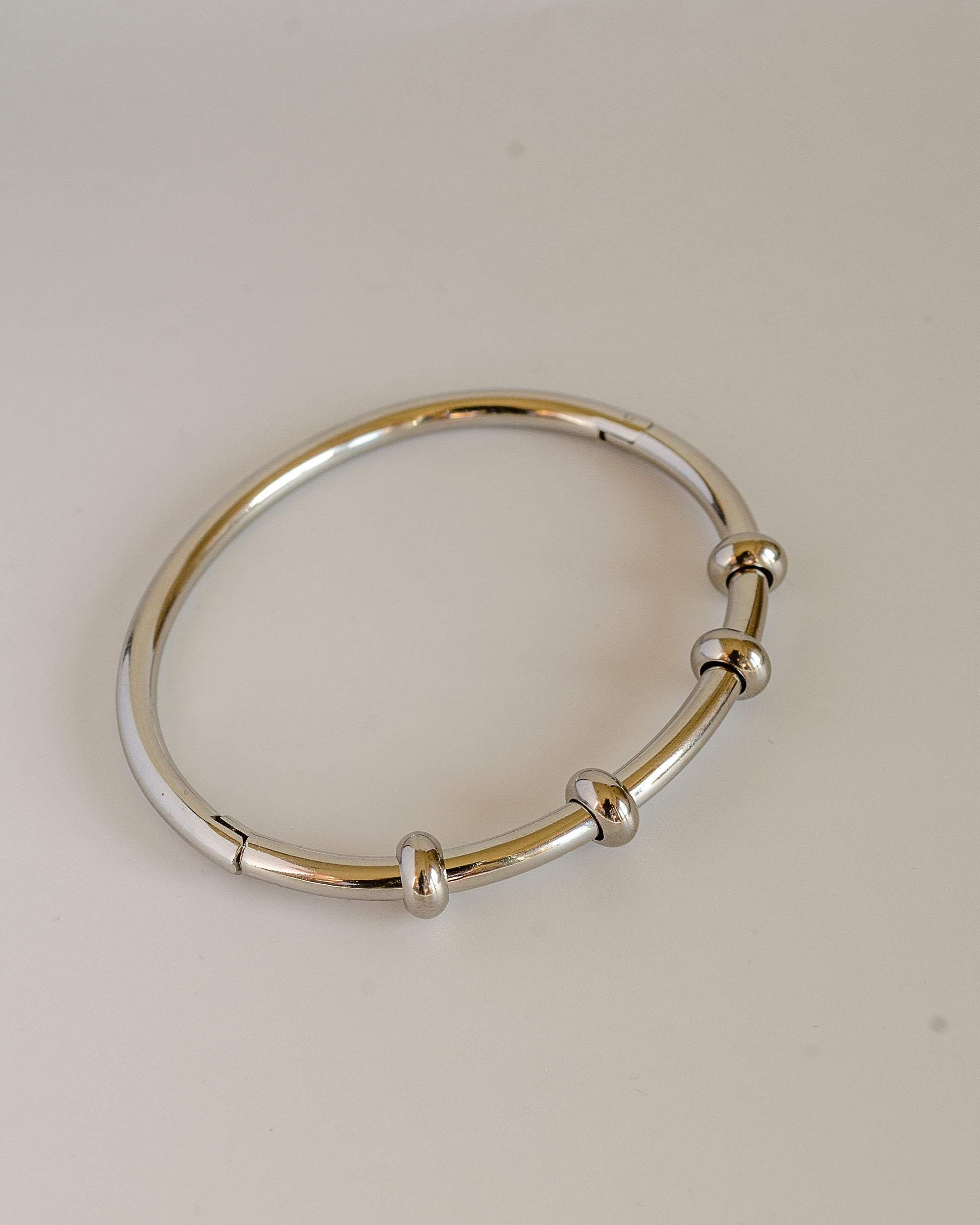 Scopri il bracciale Circle, un rigido gioiello in acciaio inox che si trasforma con te! Componilo aggiungendo ciondoli a piacere per esprimere il tuo stile unico, giocando con forme e colori ogni giorno. Resistente e leggero, è perfetto per accompagnarti in ogni avventura con un tocco di allegria e personalità.